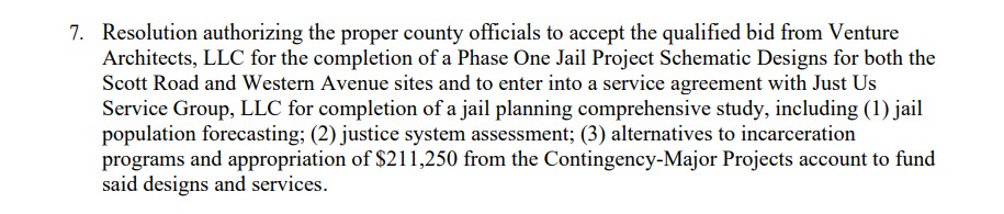 It has now been recognized that we need a new consultant, Tom Weber, to review the 450-bed projection for our jail. I did not expect that shift after the discussion at our last meeting, but I believe it is extremely important. I am very impressed with Mr. Weber’s credentials.